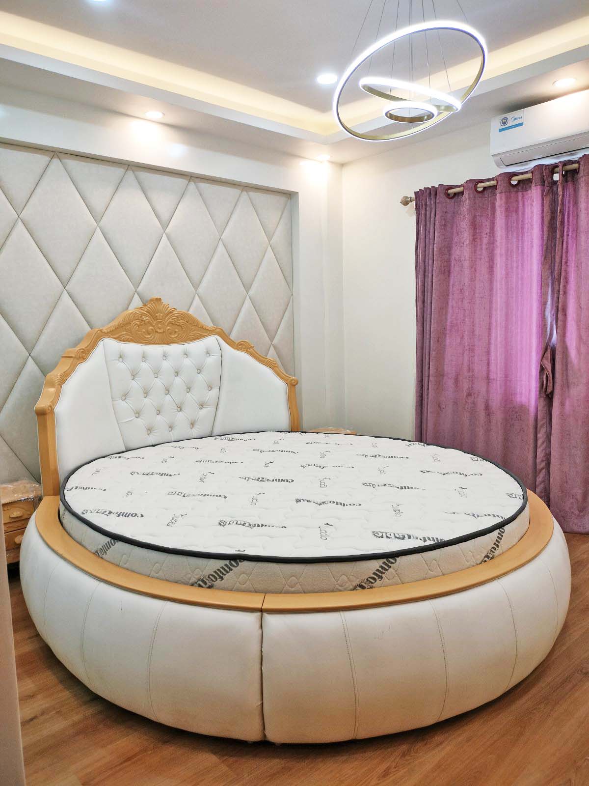 - The dramatic effect of a royal hand-carved bed in a bedroom is appropriate for the "royal" theme, but it is counterbalanced by minimal bedding and soft lighting.